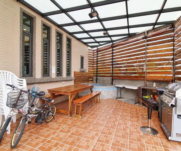 - 烤肉區:戶外用餐桌椅組、料理台水槽、烤肉爐。